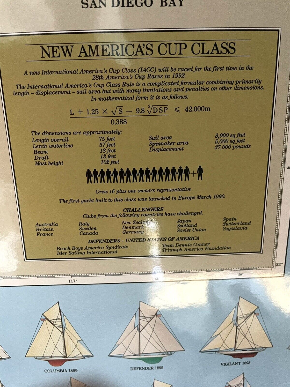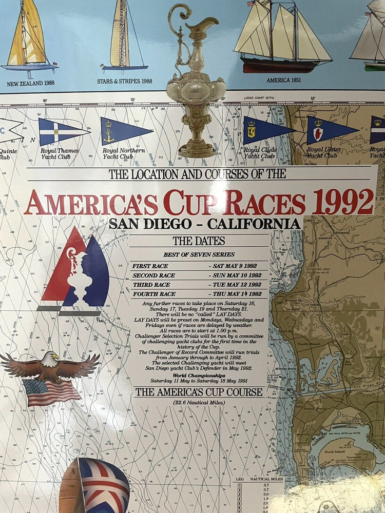 Original Map Poster -1992 AMERICA’s CUP RACES -San Diego VTG Sailing Boat Nautical