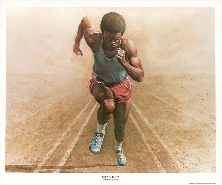 Six Olympic Watercolor Prints, 1976 and “Danby: Images of Sport” book by Kenneth Danby (Vintage Art Book and Watercolor Prints)